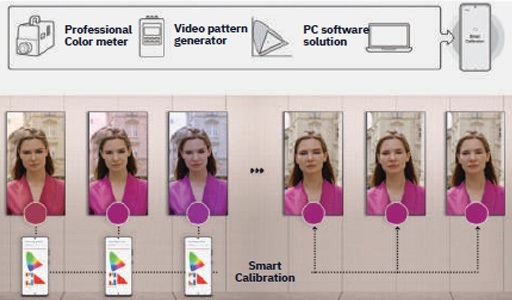 A Samsung többlépcsős gyári kalibrációja biztosítja a fényerő és a színek egységességét a teljes videófalon. A felhasználók emellett a
